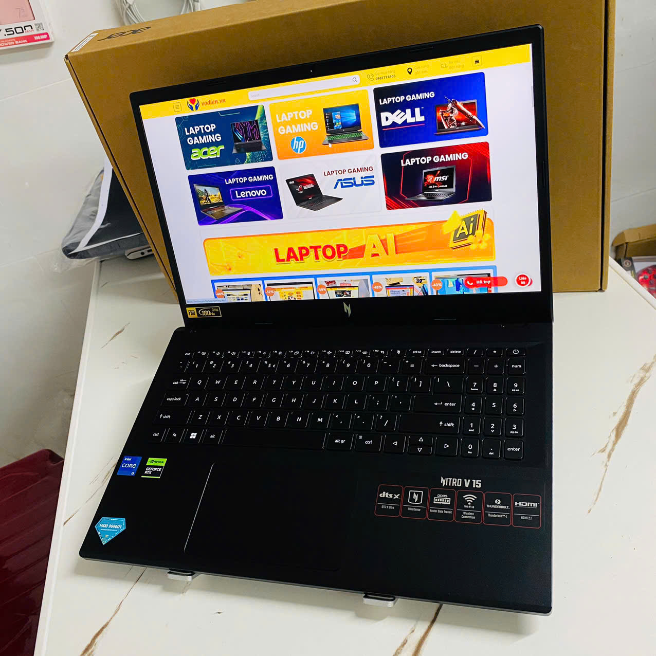- Laptop Acer GAMING Nitro V15 ProPanel nhắc về những mẫu máy gaming thì không thể nào bỏ qua được phần cấu hình, với tầm giá “văn phòng” thì khả năng mà Acer Gaming Nitro V ANV15 có thể mang lại như thế nào hãy cùng mình trải nghiệm ngay dưới đây. Máy được trang bị bộ vi xử lý Intel Core i5 13420H gồm 8 nhân cùng 12 luồng và đi chung với card rời NVIDIA GeForce RTX 2050 4 GB, đối với mình thì đây có thể được coi là bộ cấu hình khá phổ thông và được gắn hầu hết trên nhiều mẫu laptop gaming trong phân khúc.
