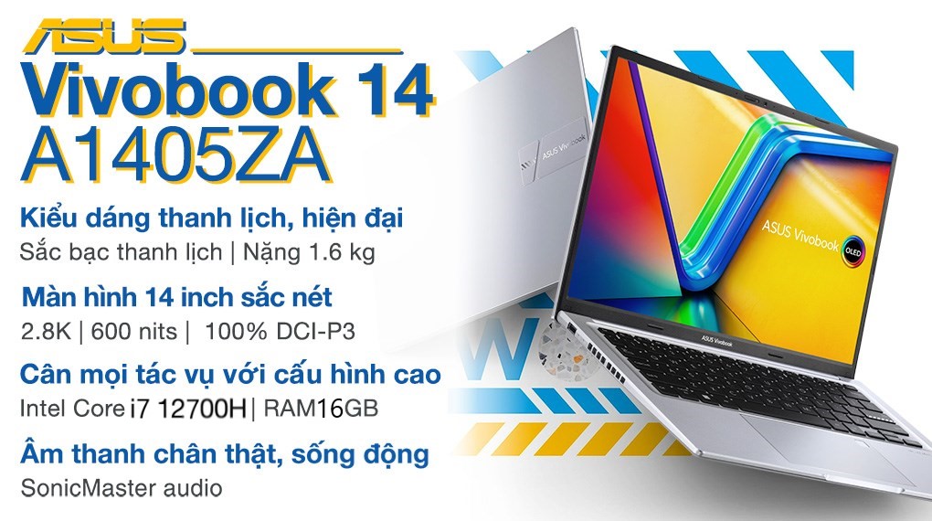 - Laptop Asus VivoBook 14X OLED A1405ZA-KM263W không chỉ ghi điểm bởi thiết kế hiện đại mà còn chinh phục người dùng với màn hình OLED sắc nét, sống động cùng hiệu năng mạnh mẽ, đáp ứng mọi nhu cầu học tập, văn phòng và giải trí.