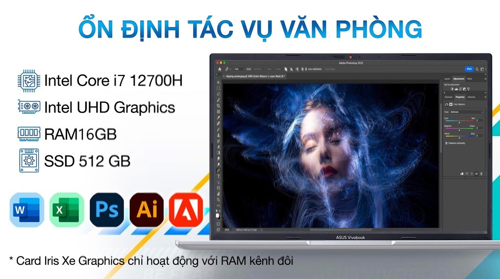 - Được trang bị bộ xử lý Intel Core i7 – 12700H nên chiếc laptop Asus Vivobook này có hiệu năng mạnh mẽ, giúp bạn xử lý mượt mà mọi tác vụ từ cơ bản đến nâng cao như lập trình, thiết kế hình ảnh, render video ngắn,… trên các ứng dụng của nhà Adobe. Laptop không chỉ ghi điểm bởi thiết kế hiện đại mà còn chinh phục người dùng với màn hình 2.8K”2880 x 1800″ OLED sắc nét, sống động cùng hiệu năng mạnh mẽ, đáp ứng mọi nhu cầu học tập, văn phòng và giải trí.