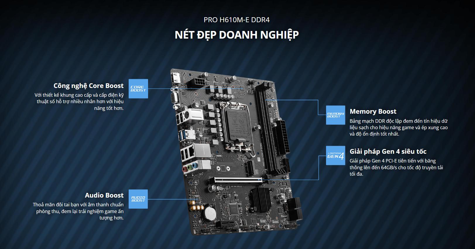 Bộ Máy GAMING và VĂN PHÒNG Mainboard MSI PRO H610M-E DDR4 i5-12400 / 16GB / 500GB SSD/ Win11 Pro (MỚI 100%)