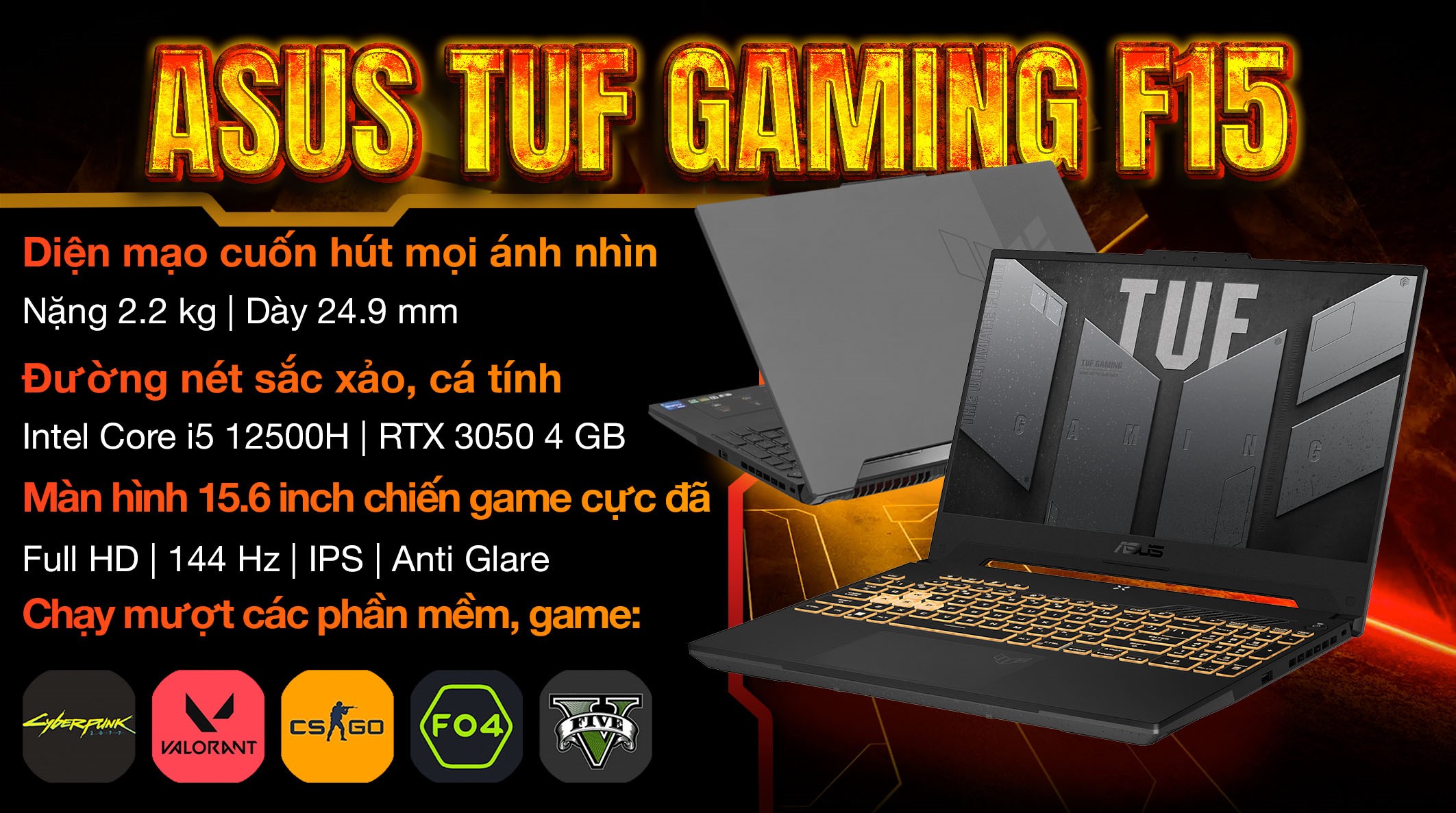 Laptop Asus TUF Gaming F15 FX507ZC4-HN330W i5-12500H/ 16GB/ 512GB/ 4GB – RTX3050/ 144Hz”Full HD”/ Win11 (K510289)