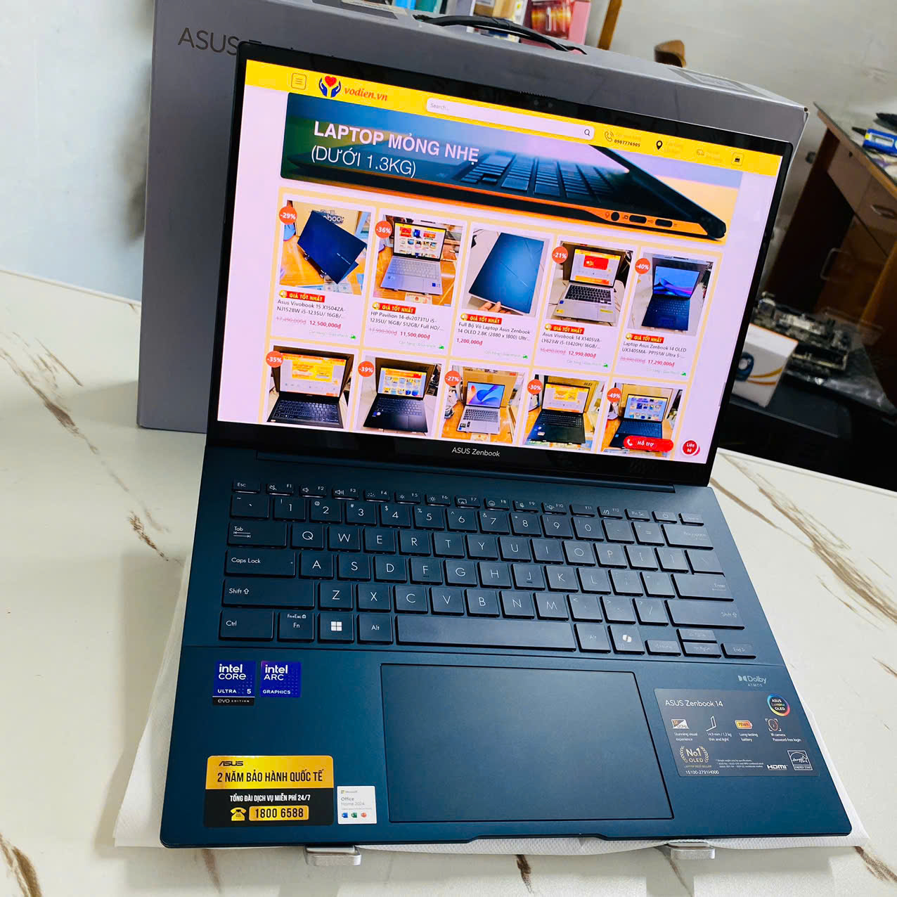 - Nguyên hộp, Dây nguồn, Sách hướng dẫn, Thùng máy và Sạc zin chính hãng Asus.