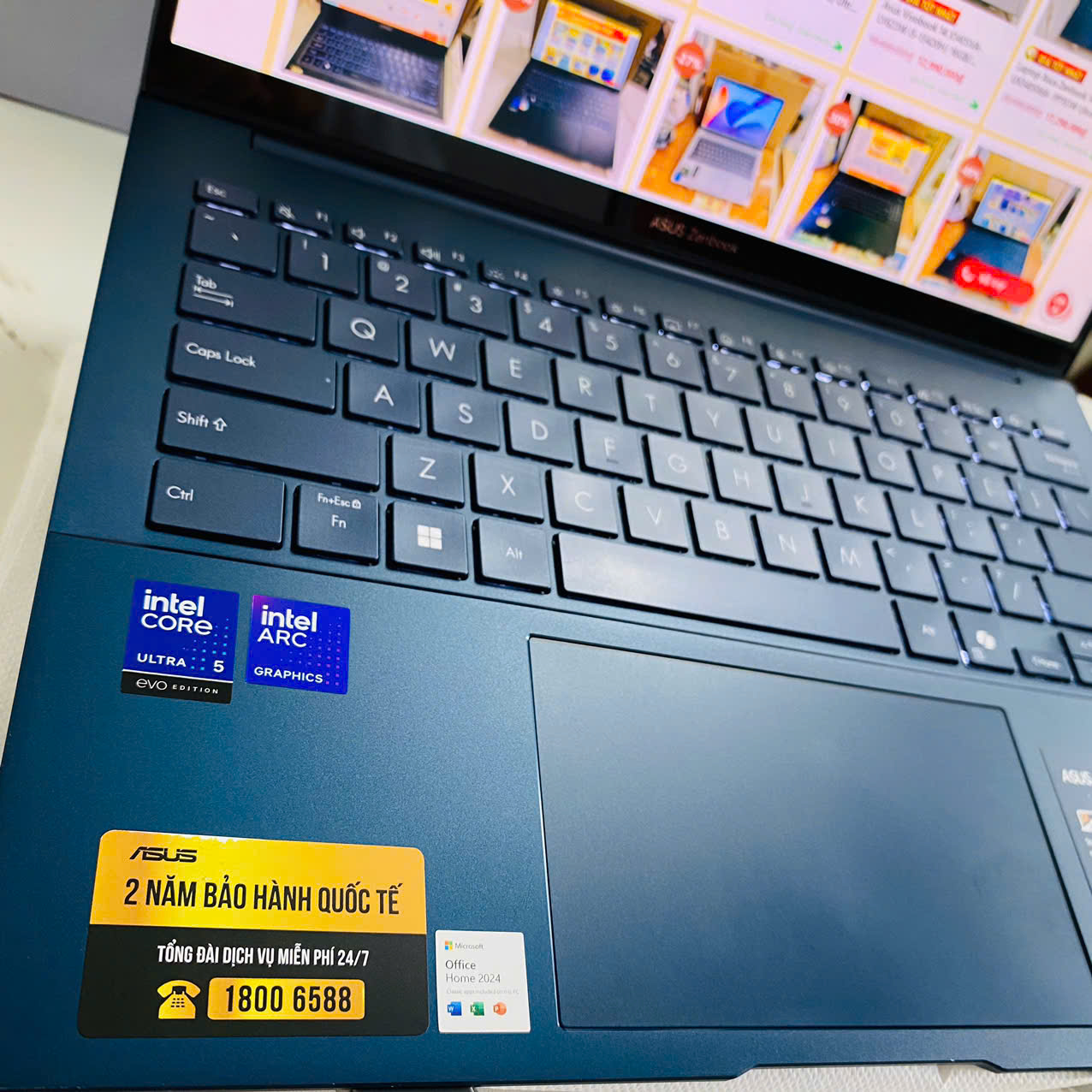 Laptop Asus Zenbook 14 UX3405CA – PZ187WS Ultra 5- 225H/ 16GB/ 512GB/ WQXGA+ 2.8K”120Hz” Cảm ứng/ Túi/ Win11/ Màu Xanh (H39302C)