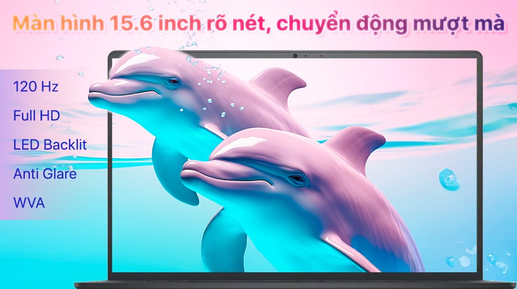 - Màn hình Dell Inspiron sở hữu tần số quét 120 Hz, mang đến hình ảnh hiển thị mượt mà, sắc nét hơn. Đặc biệt, khi bạn chơi game hay xem phim hành động, tần số quét cao sẽ giúp giảm thiểu hiện tượng xé hình, cho trải nghiệm mượt mà và sống động. Màn hình LED Backlit với độ sáng 250 nits, đáp ứng tốt nhu cầu sử dụng trong nhiều môi trường ánh sáng khác nhau.