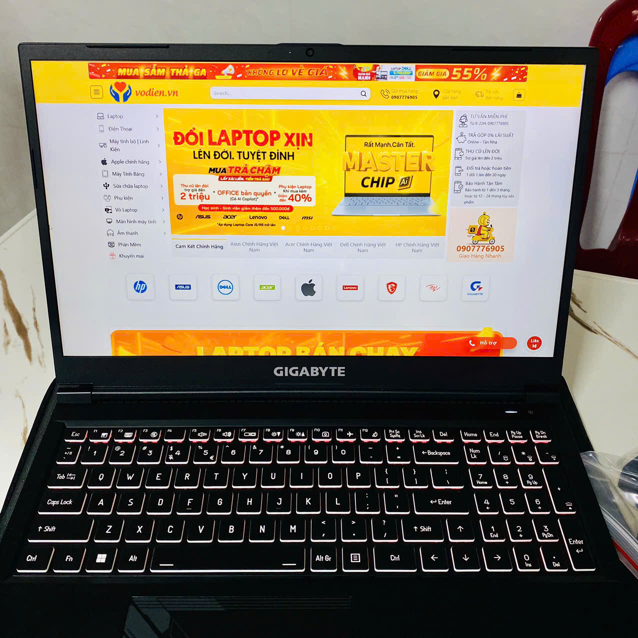 - Nguyên hộp, còn đầy đủ phụ kiện sạc từ nhà sản xuất Laptop GIGABYTE.
