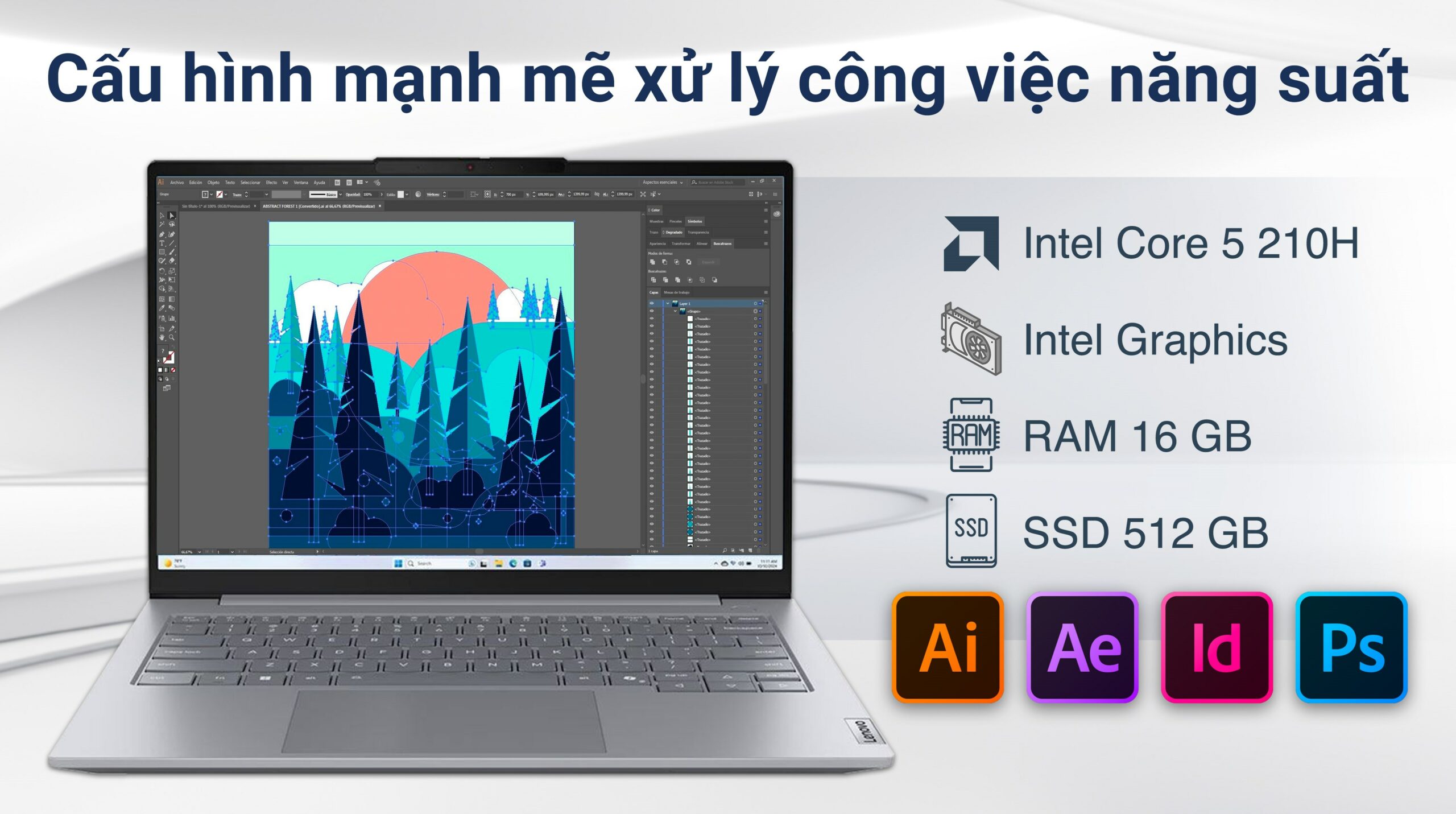 - Chiếc laptop Lenovo ThinkBook 14 G8 Core 5 210H (21SG007SVN) là thiết bị lý tưởng cho học sinh, sinh viên, nhân viên văn phòng và cả những ai làm thiết kế đồ họa cơ bản. Với hiệu năng ổn định, thiết kế mỏng nhẹ và nhiều tính năng bảo mật, chiếc laptop này hứa hẹn sẽ là người bạn đồng hành đáng tin cậy trong công việc và học tập. Đây chắc chắn là một lựa chọn đáng cân nhắc trong phân khúc giá của nó.Trái tim của laptop học tập – văn phòng Lenovo ThinkBook 14 G8 là bộ vi xử lý Intel Core 5 Raptor Lake – 210H, với 8 nhân và 12 luồng, xung nhịp cơ bản 2.20 GHz và có thể tăng tốc lên đến 4.80 GHz khi cần xử lý các tác vụ nặng. CPU này không chỉ giúp bạn hoàn thành mượt mà các công việc văn phòng hàng ngày như soạn thảo văn bản, duyệt web, mà còn đáp ứng tốt nhu cầu chỉnh sửa ảnh, video cơ bản và chạy các phần mềm thiết kế đồ họa nhẹ nhàng. Card màn hình tích hợp Intel Graphics tuy không phải là card đồ họa rời mạnh mẽ, nhưng vẫn đủ sức xử lý các tác vụ đồ họa thông thường, xem phim, chơi game giải trí nhẹ nhàng.