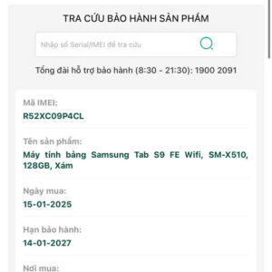 - Bảo hành 1 ĐỔI 1 hư gì đổi nấy linh kiện chính hãng HOÀNG HÀ MOBI SAMSUNG Việt Nam đến ngày "14-01-2027" nếu có lỗi phần cứng nhà sản xuất. (Xem chi tiết)