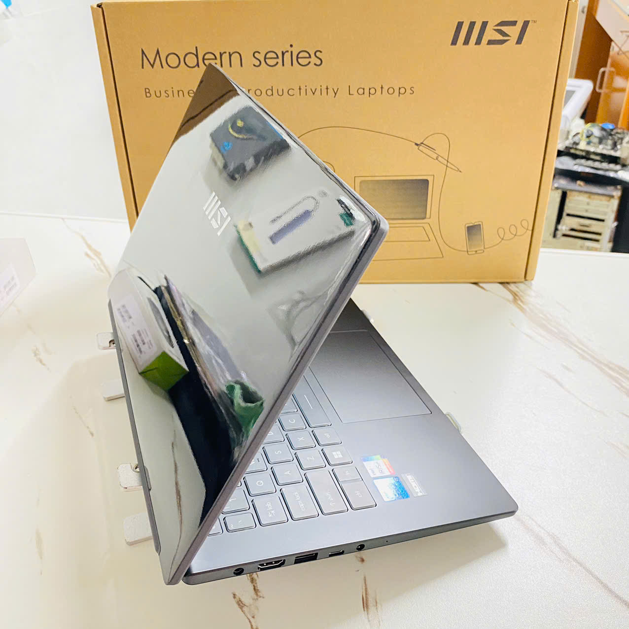 - Nguyên hộp, Dây nguồn, Sách hướng dẫn, Thùng máy và Sạc zin chính hãng MSI.