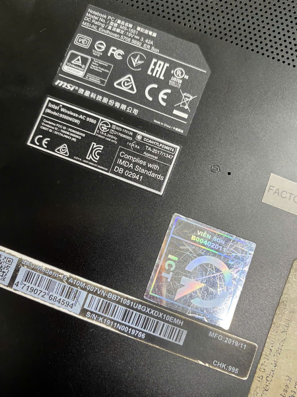 Thay mặt C Vỏ Laptop MSI Modern 15 A11M A10M 200VN A5M 238VN A5M 239VN A11MU– Hàng cũ tháo máy chính hãng 100%